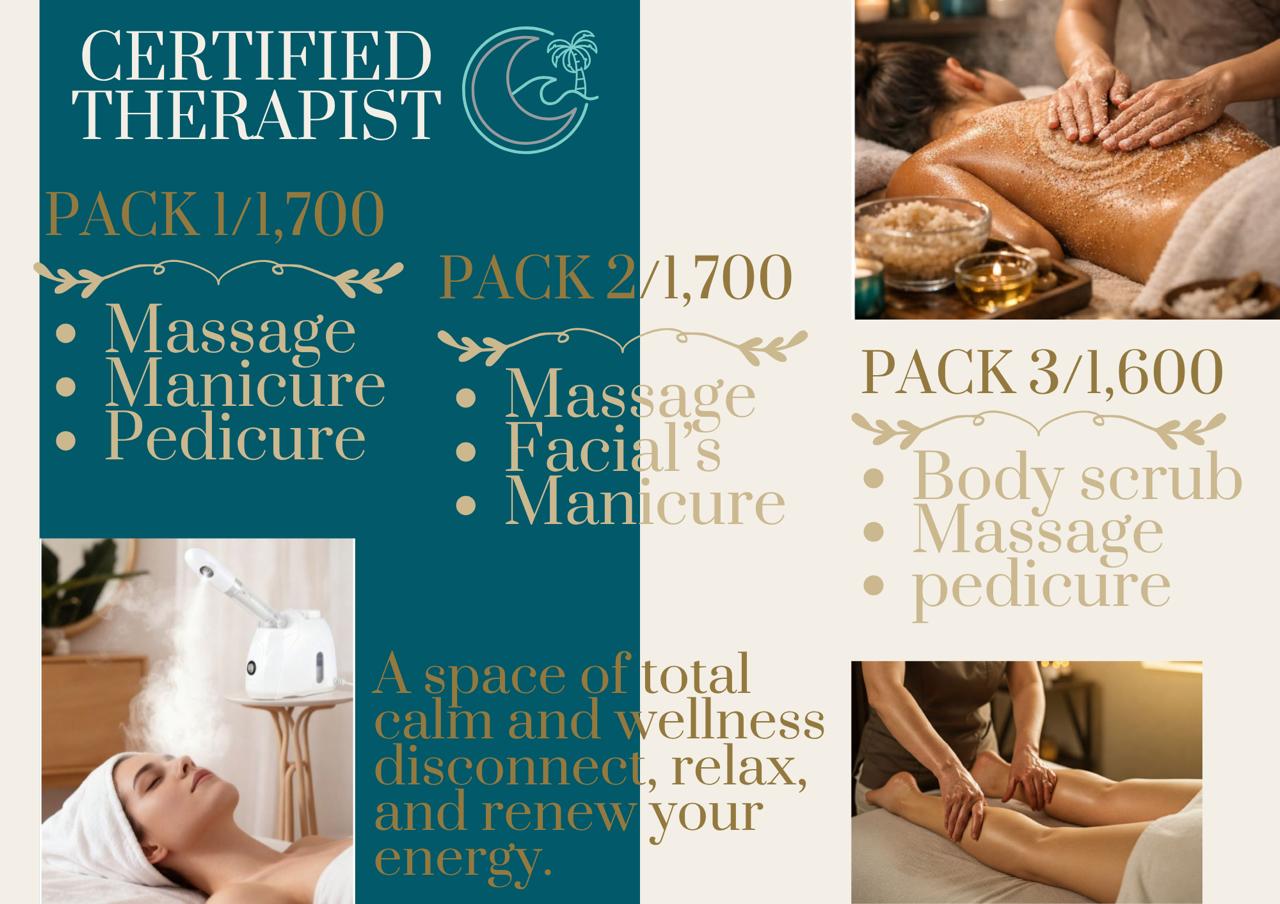 Full-service spa with certified therapists. Relax your body & enrich your spirit in an ambiance of total tranquility and professionalism. Services include professional massages, manicures & pedicures including gel polish, exfoliations, facials, and MORE.